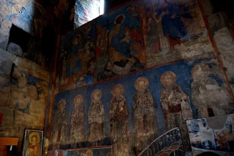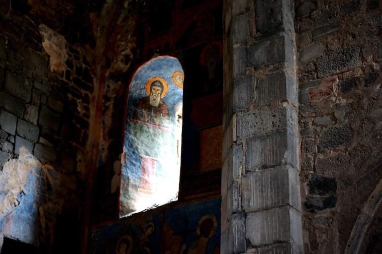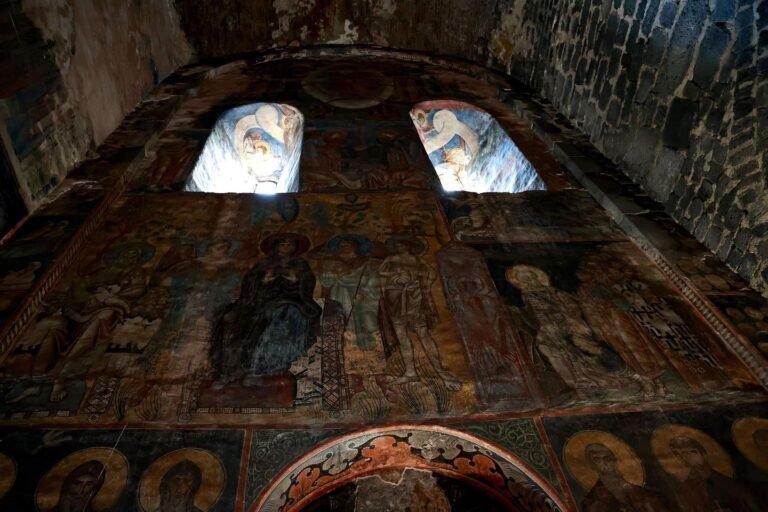 Akhtala Monastery Complex was founded in the 10th century by the Kurikian (Kyurikid) princes as a powerful fortress guarding northern Armenia, and reached its peak in the 13th century under the Zakaryan dynasty, when Ivane Zakaryan, having embraced Georgian Orthodoxy, transformed it into a major Chalcedonian religious and cultural center; the main church, St. Astvatsatsin, was rebuilt and adorned with extraordinary frescoes among the finest outside Byzantium, while chroniclers like Kirakos Gandzaketsi recorded its importance as both a dynastic burial site and a place of pilgrimage, and though the complex later suffered from invasions such as Timur Lenk’s raids and centuries of decline, it remained revered, rediscovered by 19th-century scholars, restored in the 20th century, and today stands as one of Armenia’s most remarkable medieval monuments, wrapped in both history and legend.