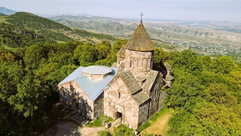 Located west of Acharkut village in Tavush Province, this 13th-century monastic complex sits nestled on a forested mountainside. The site includes a domed church, a gavit, a bell tower, auxiliary buildings, and intricately carved khachkars (cross-stones).